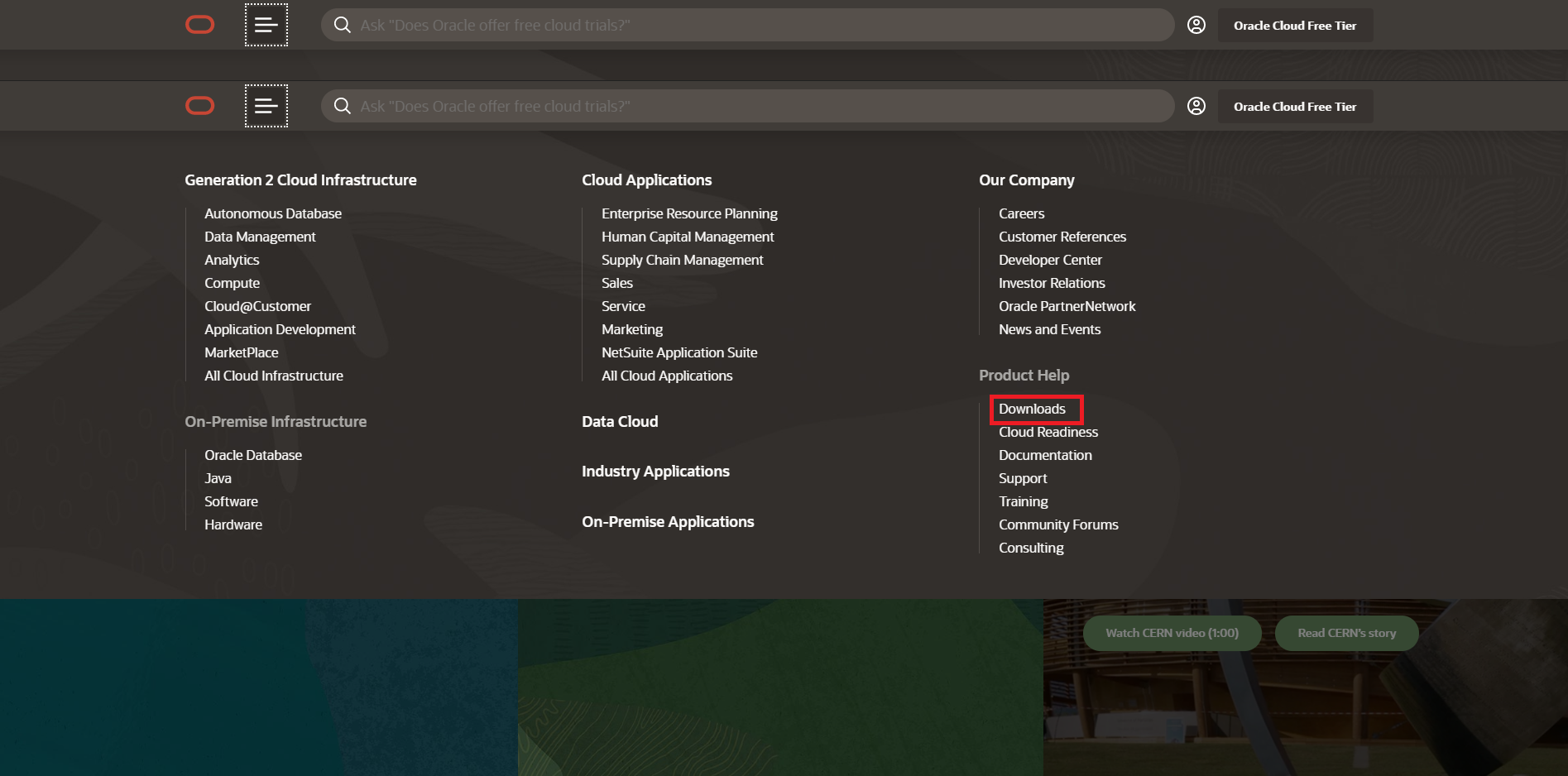 2-1) www.oracle.com에 에 접속한 뒤, downloads 클릭!