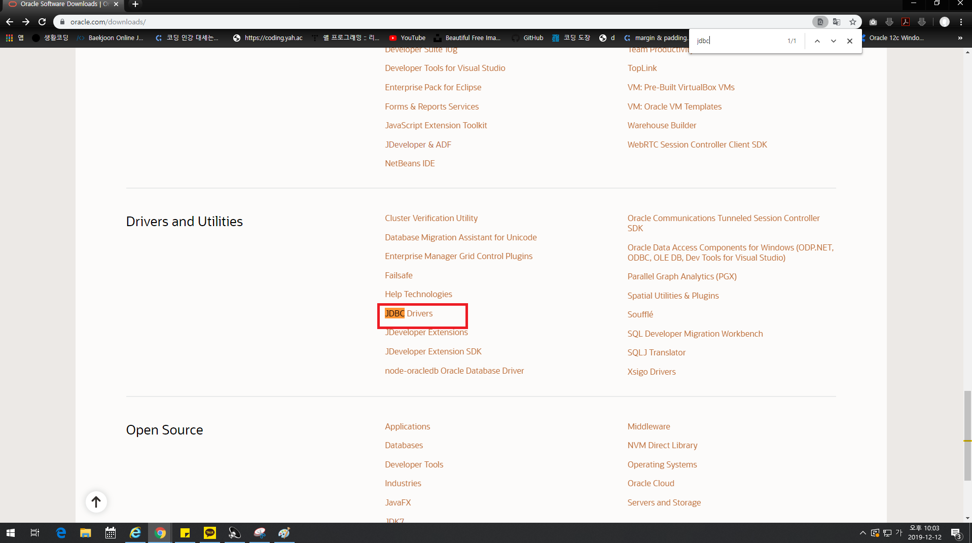 2. JDBC 드라이버 다운로드(Oracle DBMS를 설치했기에 JDBC Drvier는 Oracle에서 설치를 한다.)