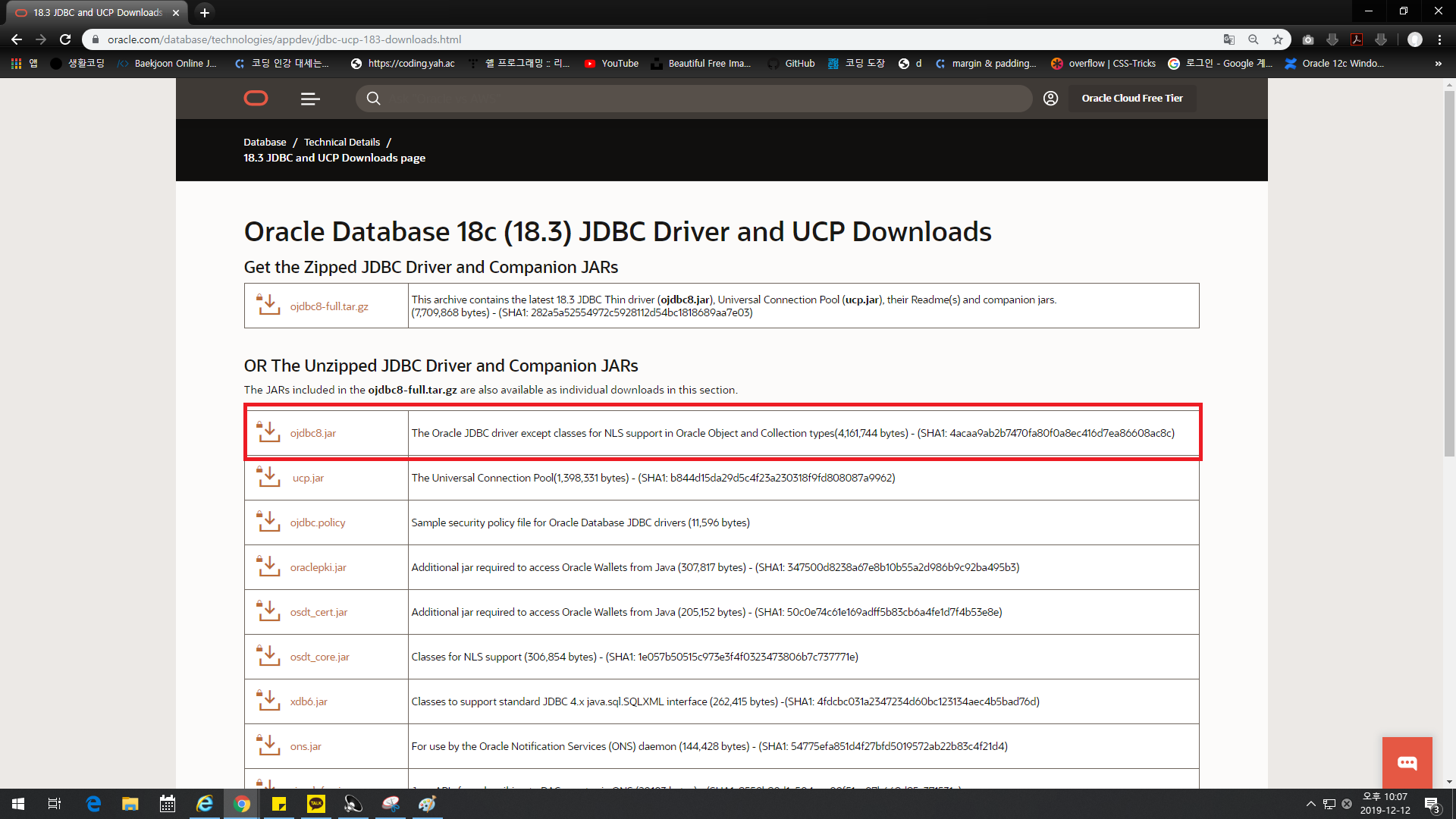 2-3) DBMS 버전에 맞는 JDBC Drivers 설치(저는 18c 버전이기에 18c 버전으로 설치!)